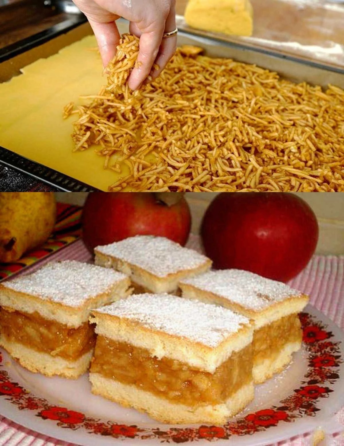 Rychlý jablečný koláč na plech je jeden z nejvděčnějších receptů českých domácností. Vláčné těsto, bohatá jablečná vrstva se skořicí a nahoře křupavý posyp vytváří přesně ten typ moučníku, který chutná teplý i studený. Na fotce je vidět klasická „jablečná žemlovka/řezy“ ve formě vrstveného koláče: spodní těsto, jablečná náplň a horní drobenková vrstva.