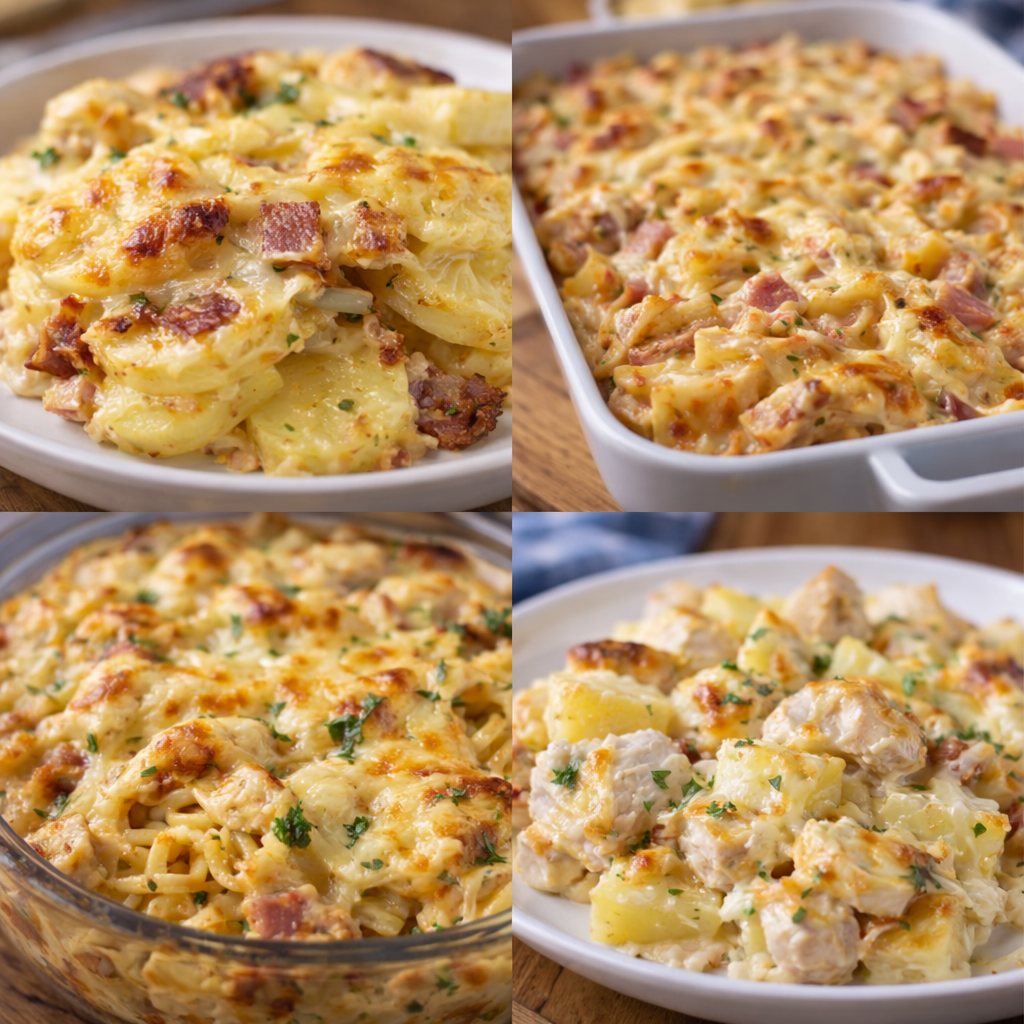 Stačí vám brambory, těstoviny, rýže, kuřecí maso, uzenina, nebo sýr. Díky zapékání se chutě krásně propojí a na povrchu vznikne zlatavá a křupavá kůrka. Navíc se dají snadno obměňovat podle toho co máte v lednici.