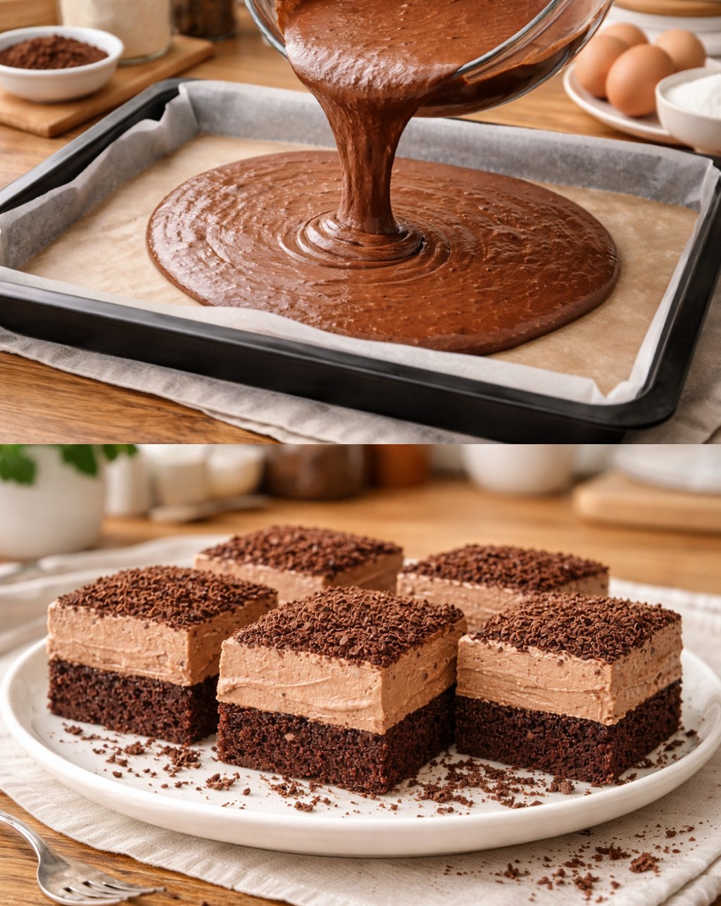 Šlehačka je krásně nadýchaná a drží tvar. Dezert se hodí k odpolednímu šálku kávy, nebo jako pohoštění pro rodinnou oslavu. Po dokončení je dobré nechat moučník několik hodin odležet v lednici. Krém se zpevní a jednotlivé vrstvy se lépe propojí.