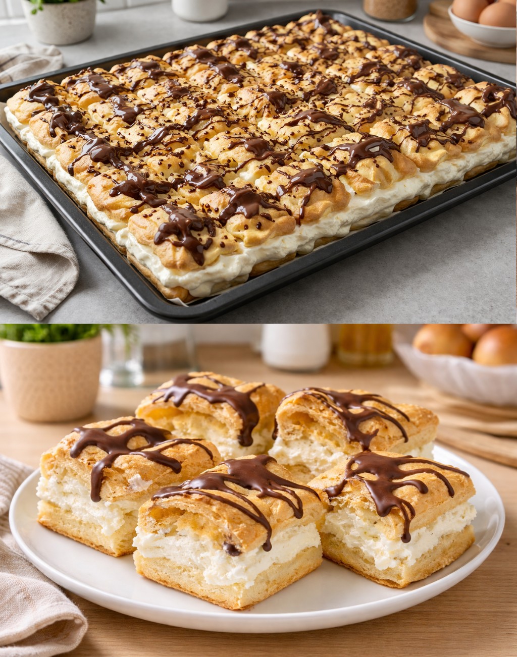 Na první pohled se může jeho příprava zdát složitá, ale při dodržování jednotlivých kroků je poměrně jednoduchá. Základem je odpalované těsto, které se následně doplní krémem, jehož jemnost kontrastuje s výraznější chutí čokoládové polevy.