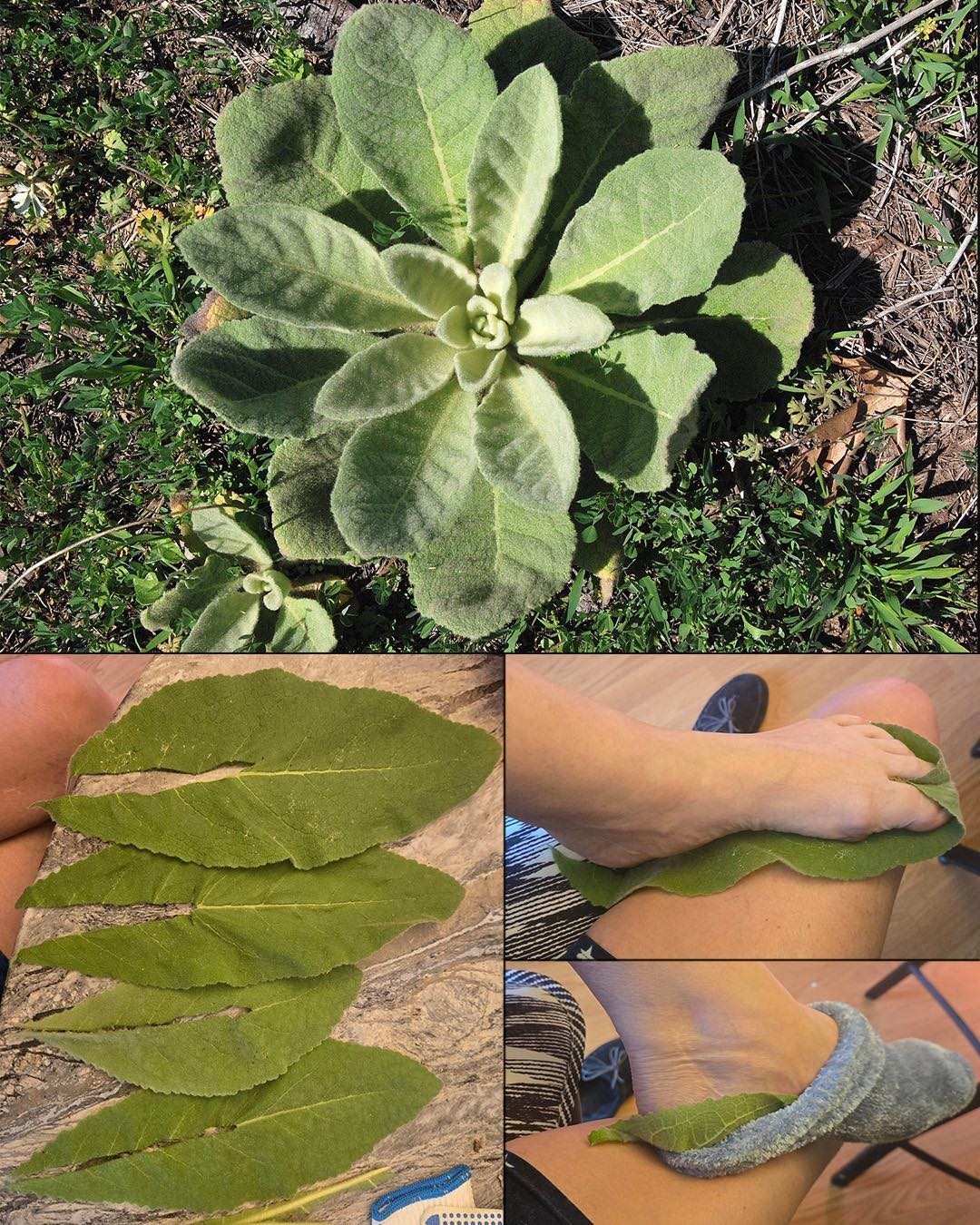 2️⃣ Divizna je známá svými protizánětlivými účinky. Přiložením listů na chodidla se její síla postupně vstřebává a působí na celé tělo.