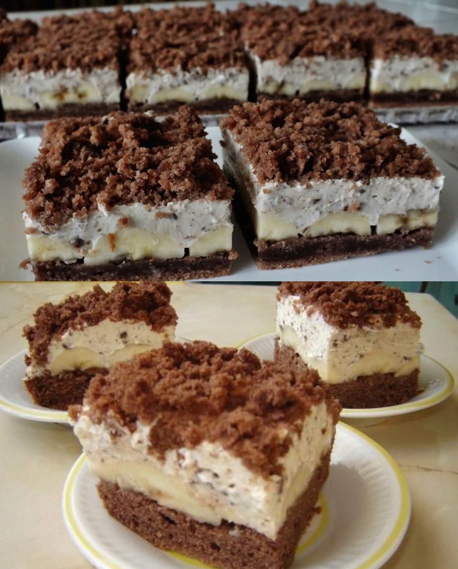 Krtkův plech z hrníčkového těsta s banány a čokoládovou šlehačkou. Jednoduchý, vláčný dezert na velký plech. Recept krok za krokem, tipy a časy.
