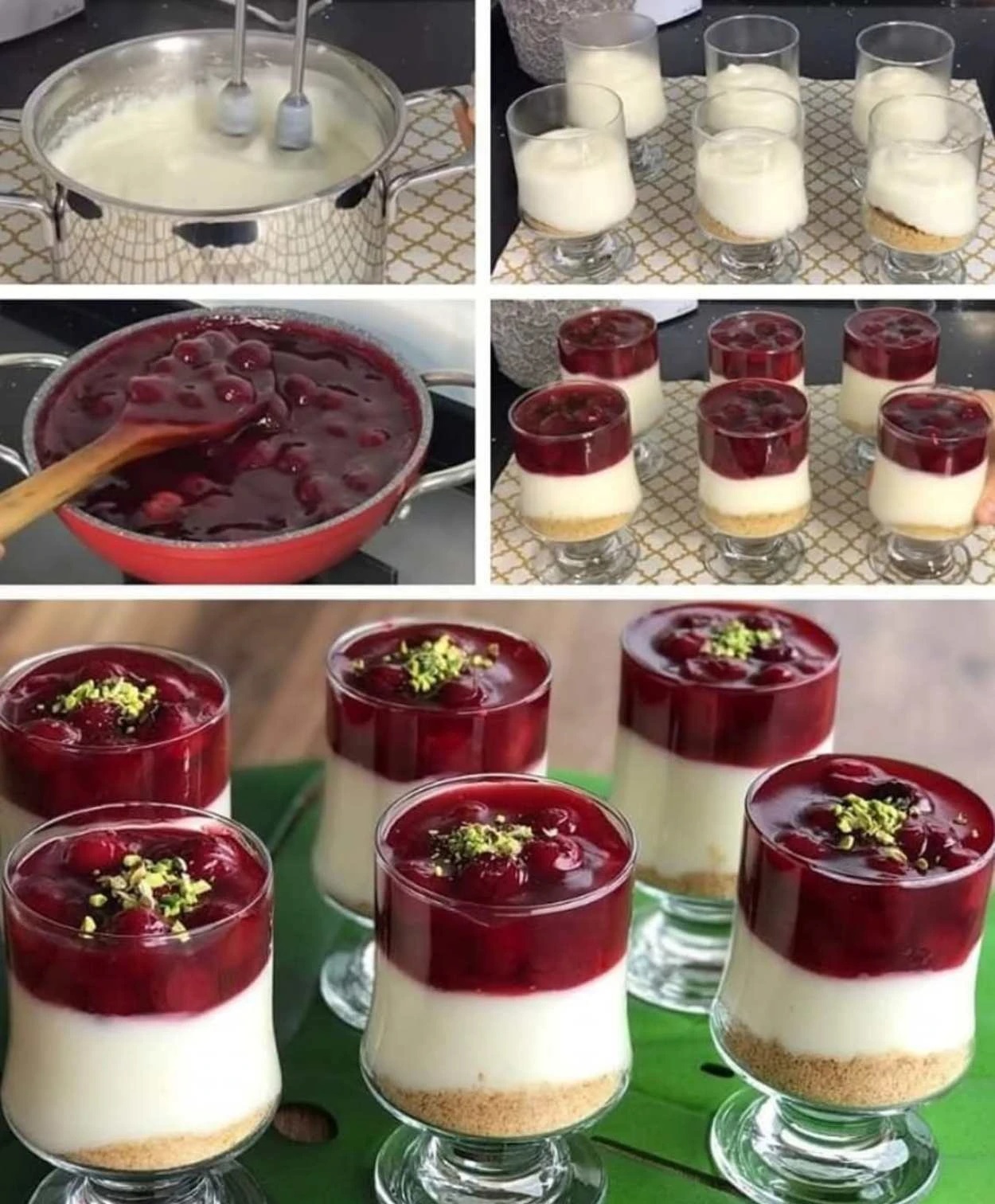 Rychlý, osvěžující a spolehlivý dezert „do poháru“, který zvládnete i bez želatiny. Křupavý sušenkový základ, jemný smetanovo-jogurtový krém a navrch teplá ovocná omáčka, která po zchladnutí krásně zpevní a zvýrazní chuť. Ideální na léto, když nechcete zapínat troubu.