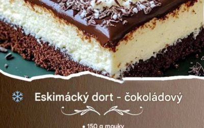 Eskymo dort patří mezi oblíbené české moučníky na plech. Má vláčný kakaový korpus, vysokou vrstvu jemného vanilkového krému a navrch…